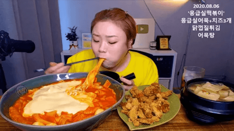 Mukbang là một loại hình livestream trong tình trạng đang ăn uống với đa dạng món ăn khác nhau. Trong suốt quá trình trực tiếp, streamer sẽ chỉ tập trung ăn và không cần phải trò chuyện trực tiếp với người xem.